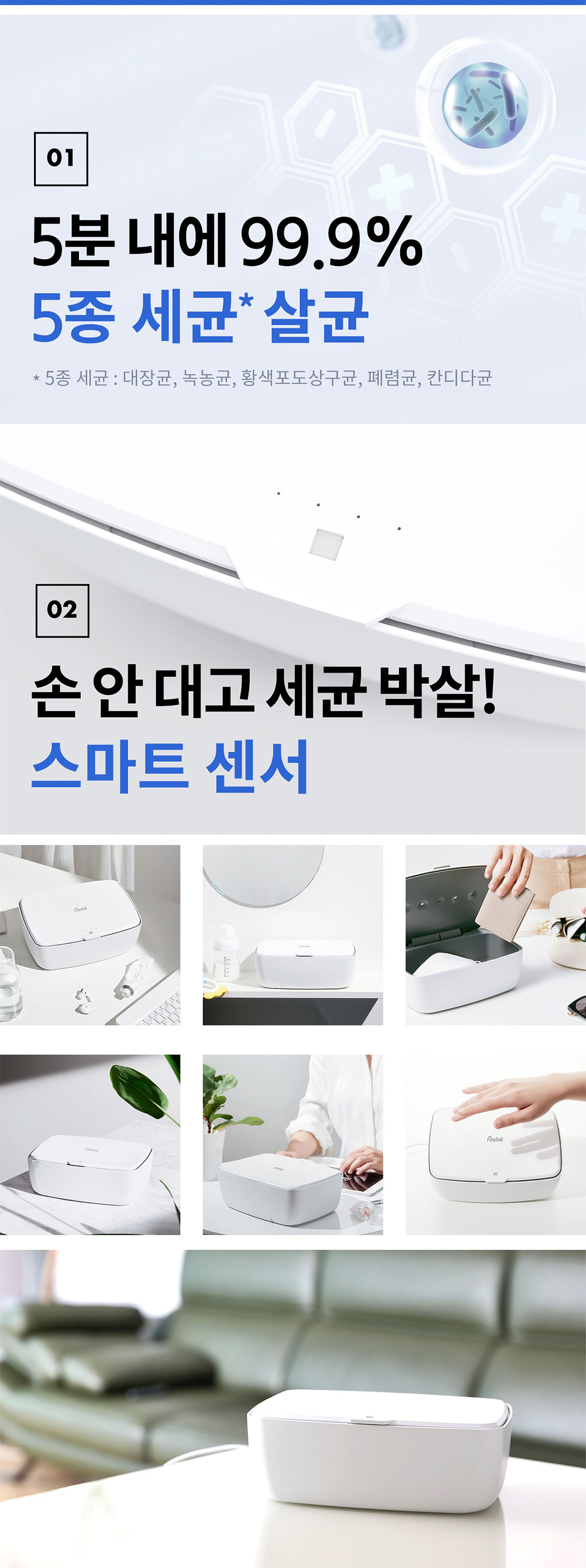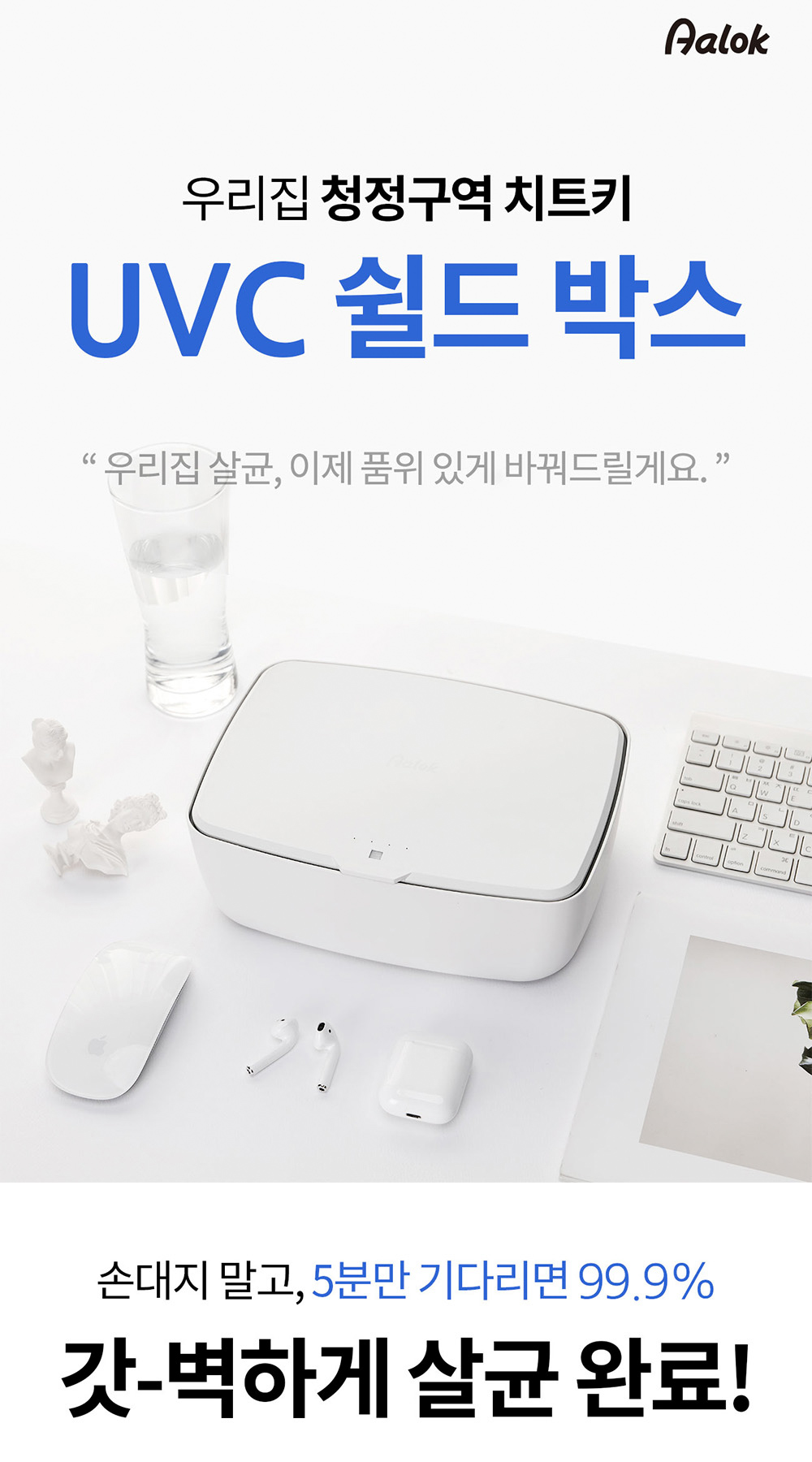 99.9%살균? 싹다넣어ㅣ핸드폰부터 퍼프, 차키까지 알록 UVC쉴드박스