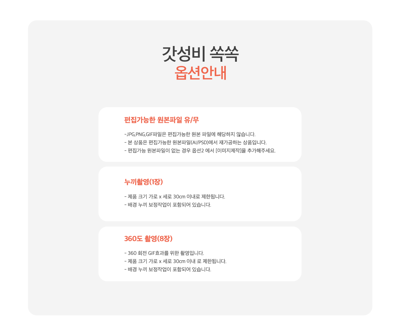 - 주문 완료 후 옵션 이미지 및 사양을 변경 원하실 경우 [제작준비중] 상태에서만 변경이 가능하며 [제작중]에는 변경 및 취소가 불가합니다.
